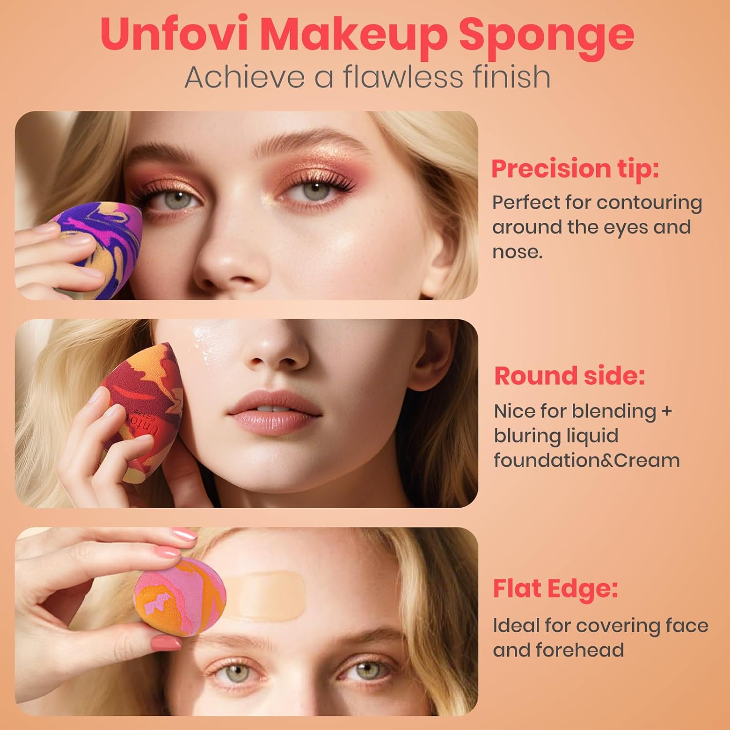 - â ăDual Edges DesignăUnfovi advanced makeup sponge features a precision tapered tip to easily blend concealer around the inner eye and delicate nasal area, while its angled flat edge seamlessly contours cheekbones, jawline, and forehead for polished look. This multi-functional shape can help achieve streak-free application.