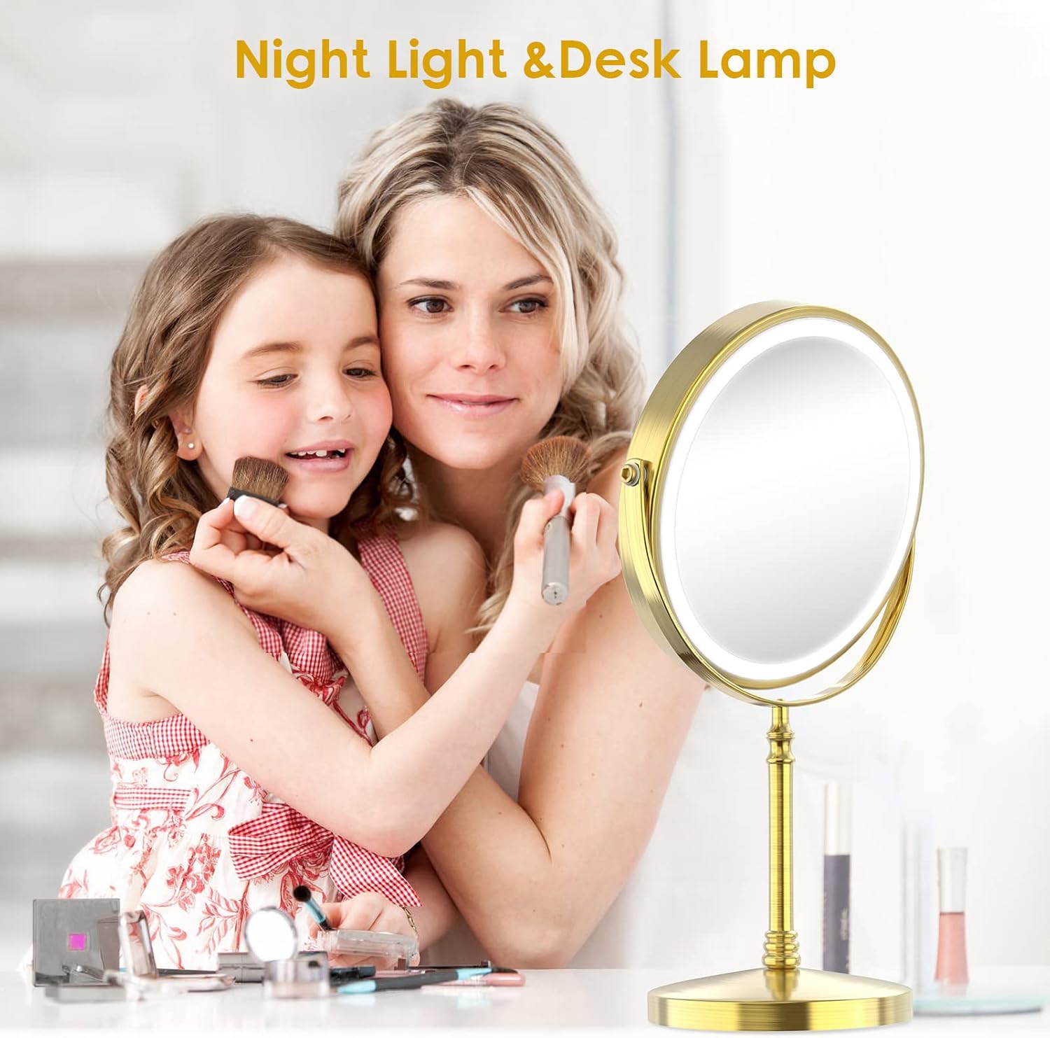 • Detail Design and Widely Use: This lighted makeup mirror is a large 8-inch size, providing a large and high-definition wide-angle field of view. The compact design takes up very little space, and the non-slip padding at the bottom enables the mirror to stand stably on the countertop. It is not only a professional vanity mirror that can be used in home, bathroom, hotel, spa, beauty salon, etc., but also a desk lamp, night light, atmosphere light, etc., it is the perfect present.