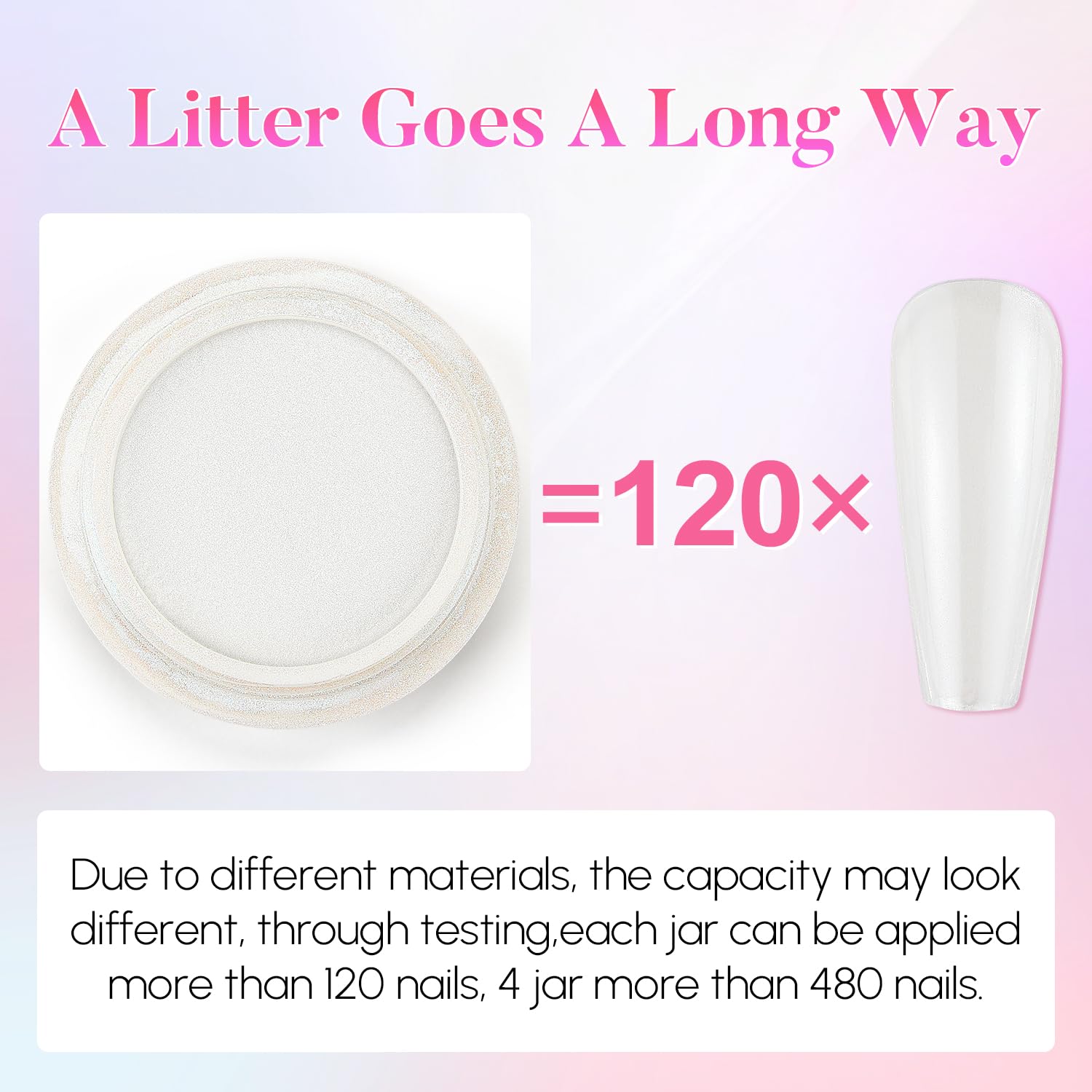 - A little Goes A Long Way: AIMEILI holographic chrome nail powder for nails, only need to be applied a small amount to decorate nails. It's enough for you to do 40-50 manicures (more than 300 nails) at the nail salon or home for each jar.