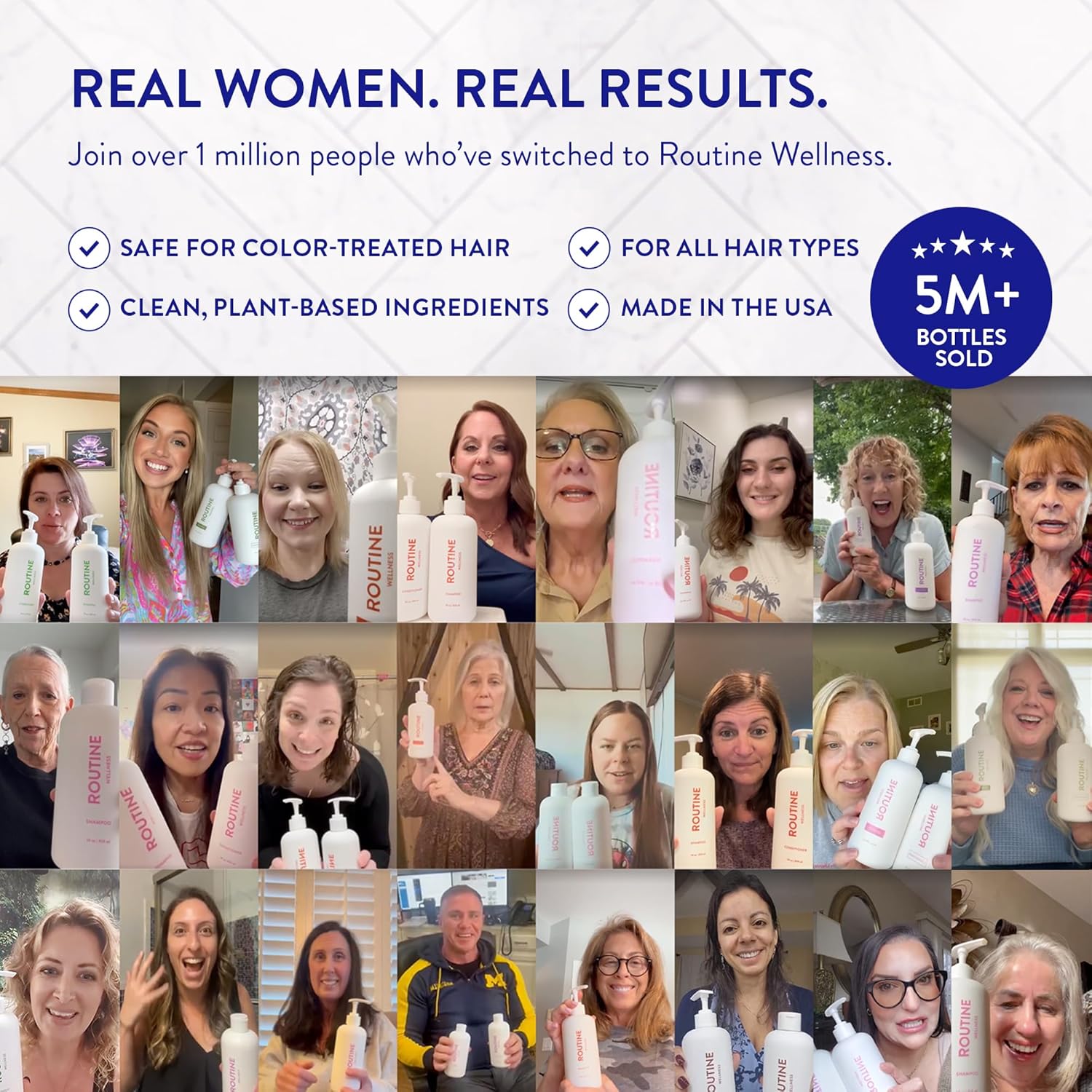 - ROUTINE WELLNESS SHAMPOO: Infused with hair strengthening ingredients for women and men, Routine Wellness Shampoo reduces thinning caused by breakage, ensuring your hair feels stronger and fuller with our best shampoo for thinning hair.