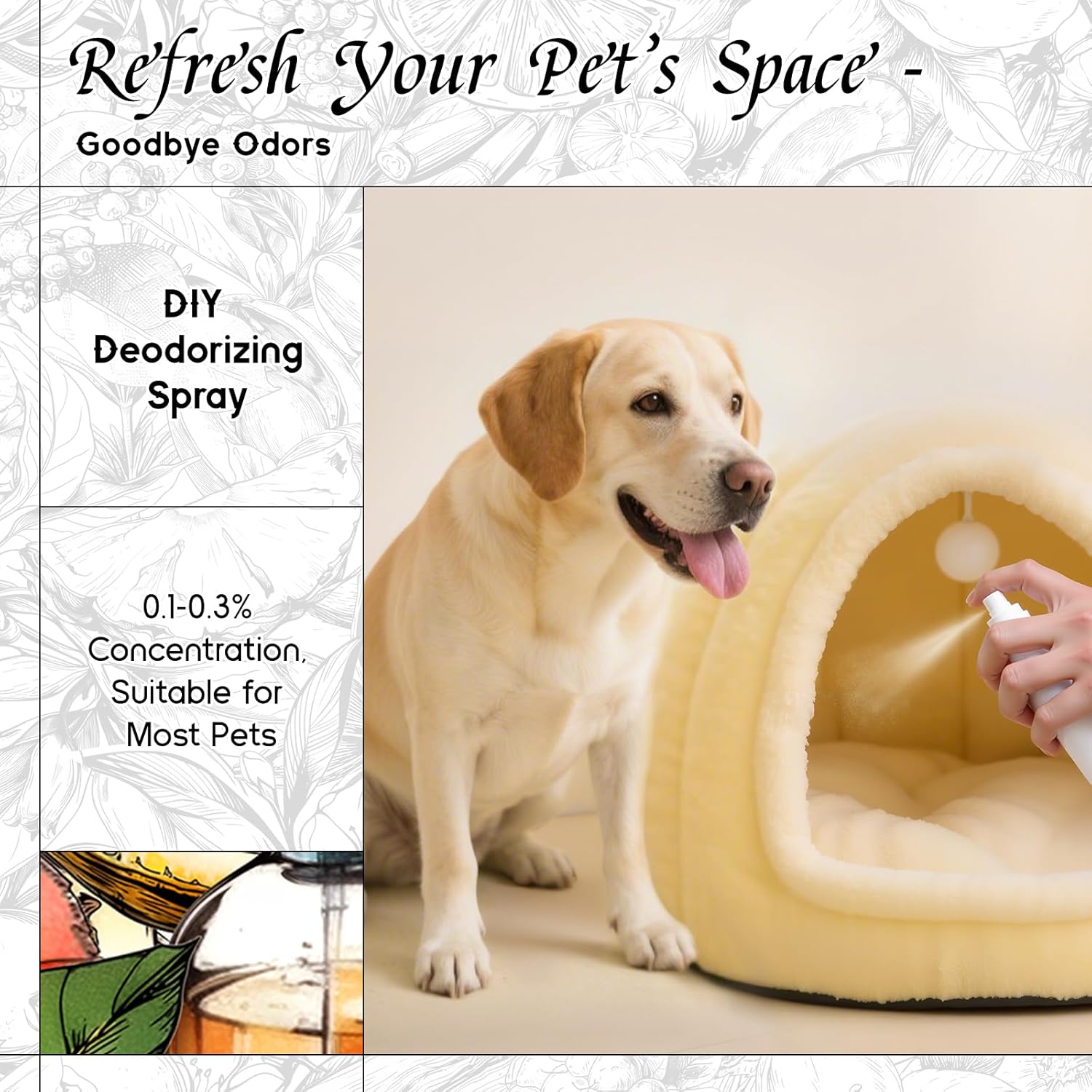 - Pet-Safe Formula – Gentle enough for pet sprays and shampoos when diluted. Can DIY pet home fragrance mist that gently neutralizes pet odors
