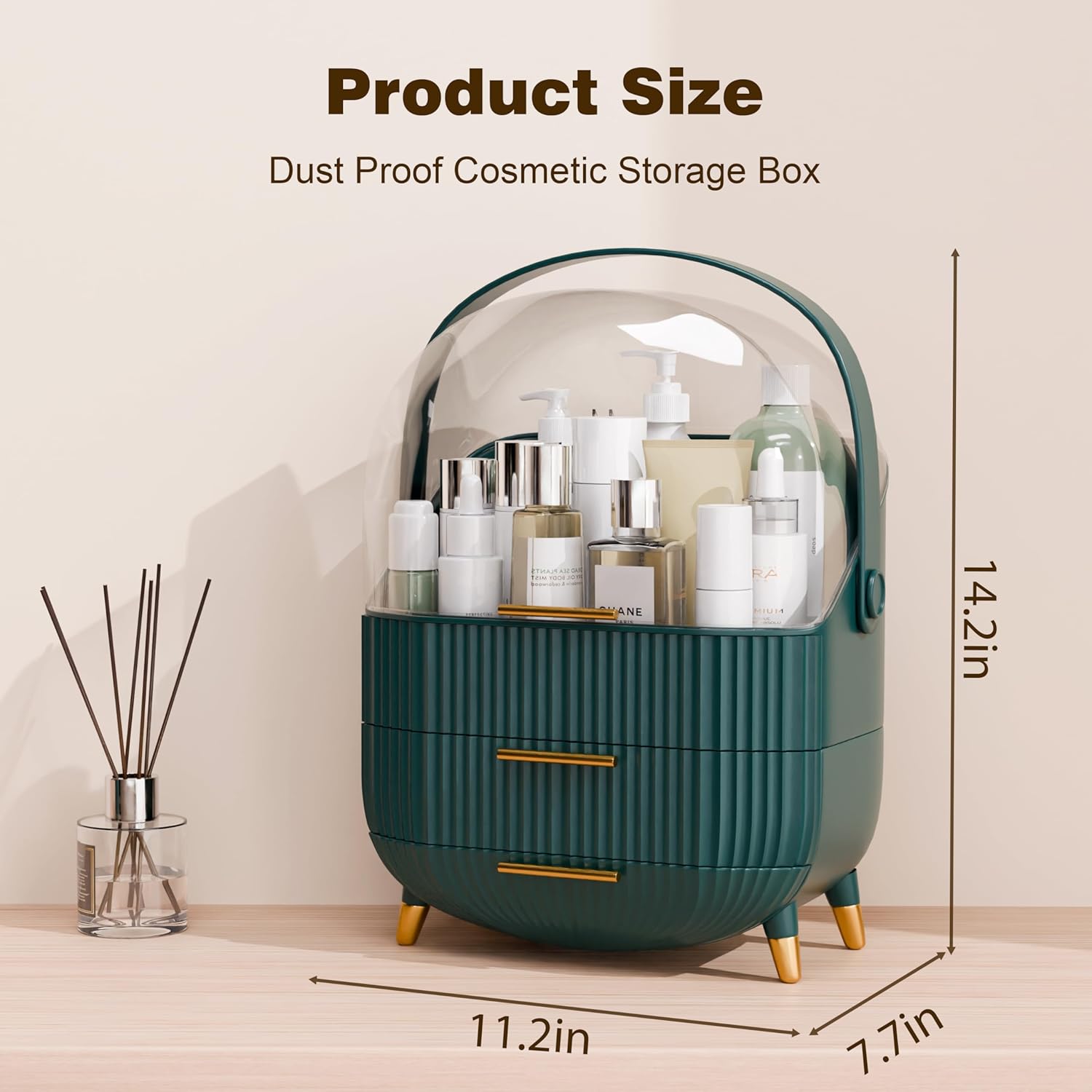 Makeup Organizers and Storage Make up Organizer for Vanity Cosmetics Skincare With Lid and Drawers Display Cases for Countertop Bathroom Women Teenager Girl Gifts(Dark Green)