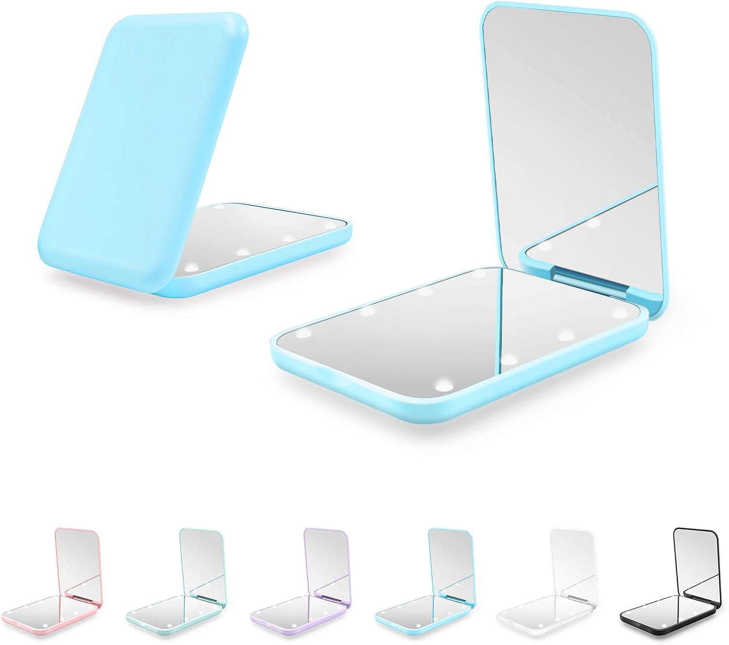 - [Stay Beautiful All the Time]:Our compact mirror is lightweight and compact, easy to carry, with a small built-in battery, which can help you save the time of charging, so that you can watch your facial makeup meticulously all the time. It's the perfect companion for you on the go. Whether you're in between makeup sessions or out and about, it can create a flawless look for you, so you can feel confident and beautiful on any occasion.