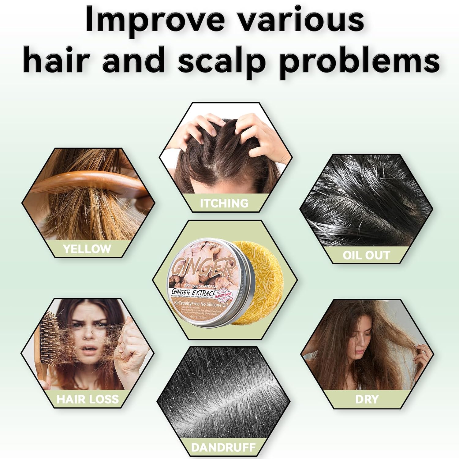 - 【Safe Ingredients】Ginger Shampoo Bar uses pure natural ingredients, including ginger extract, shea butter, olive oil, coconut oil, and other ingredients. It has a mild effect and does not hurt the scalp. Therefore, you can use it with confidence even if you have sensitive skin.