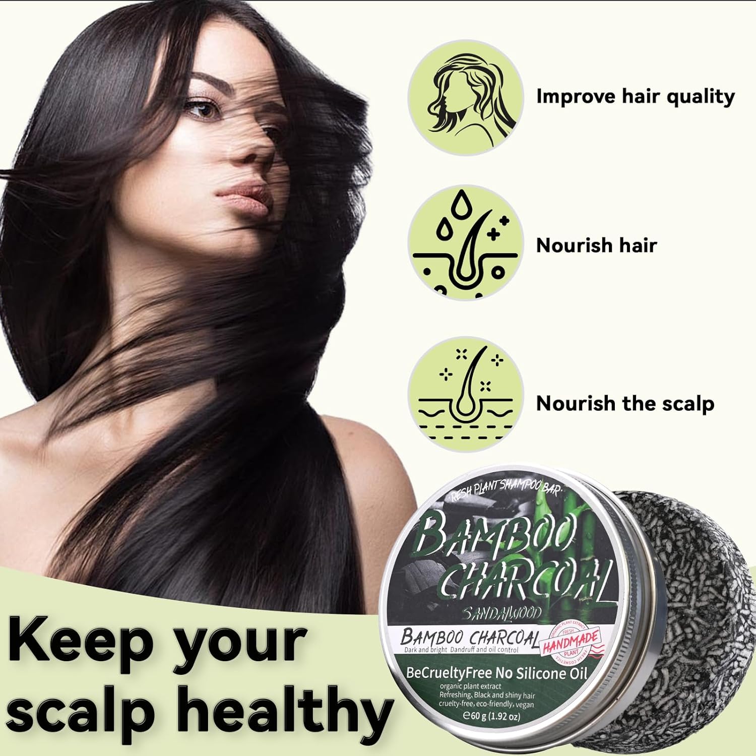 - 【Safe Ingredients】Bamboo Charcoal Shampoo Bar uses pure natural ingredients, including bamboo charcoal extract, shea butter, olive oil, coconut oil, and other ingredients. It has a mild effect and does not hurt the scalp. Therefore, you can use it with confidence even if you have sensitive skin.