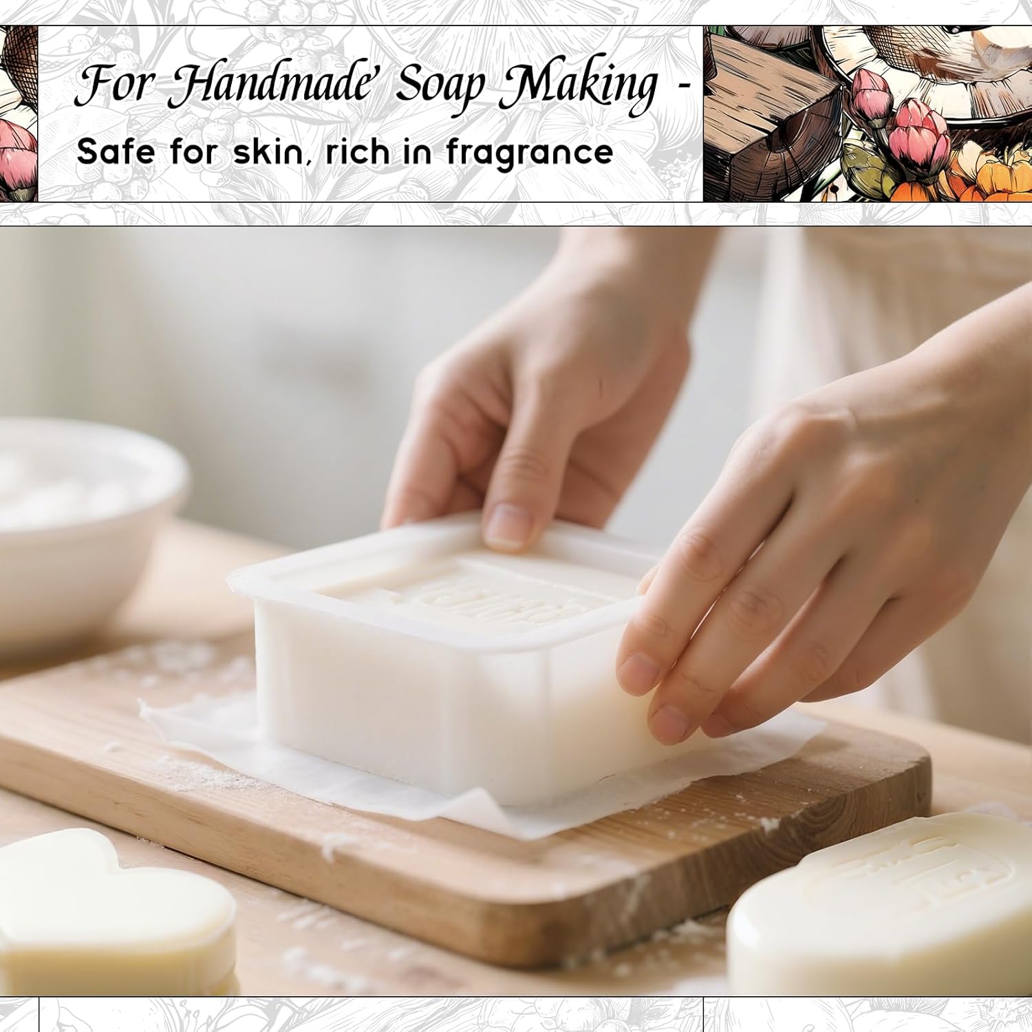 - DIY – Ideal for candle-making, soap-making, and perfume creation. Provides a rich fragrance in soy candles, melt-and-pour soaps, and other DIY home fragrance projects