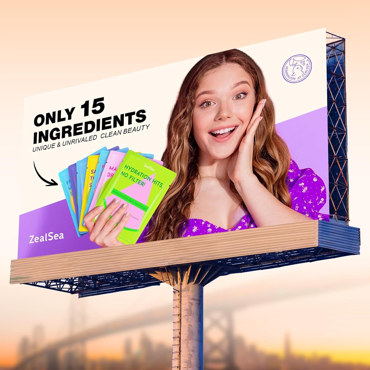 ZealSea Clean Beauty Face Masks Skincare, Minimalism 15 Ingredients Sheet Mask, Deep Hydration Facial Mask for Bouncy & Glowing, Sleepover Spa Party Supplies, Women Teen Girl Gifts Trendy Stuff, 7Pack
