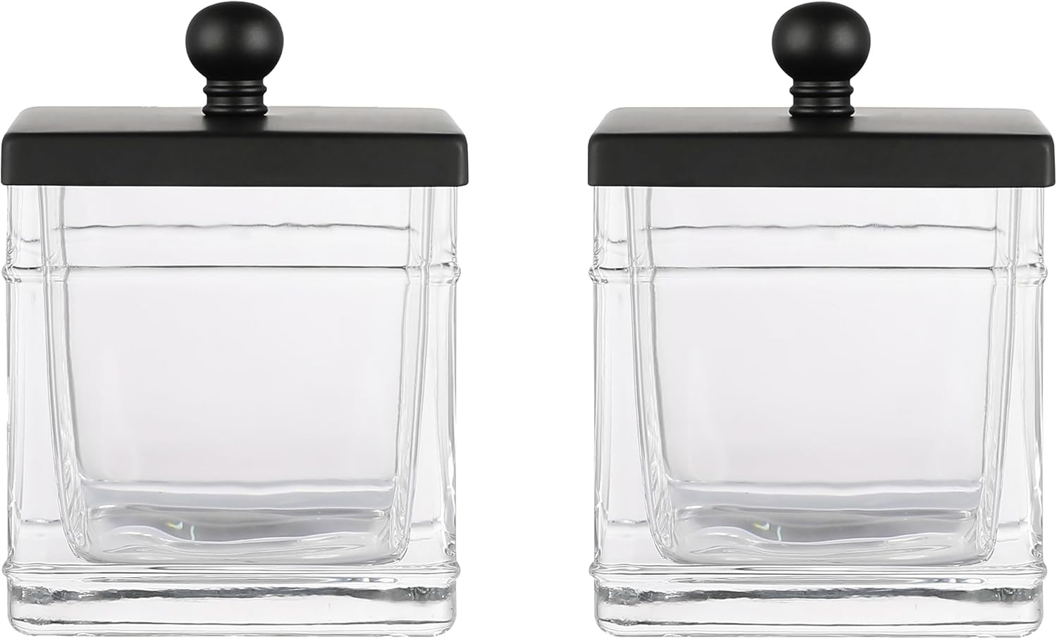 Glass Cotton Jar Holder 2 Pack– Matte Black Lid, Elegant Bathroom Storage Canister for Qtips, Cotton Balls, Floss, Makeup Organizer, Vanity & Bathroom Organization