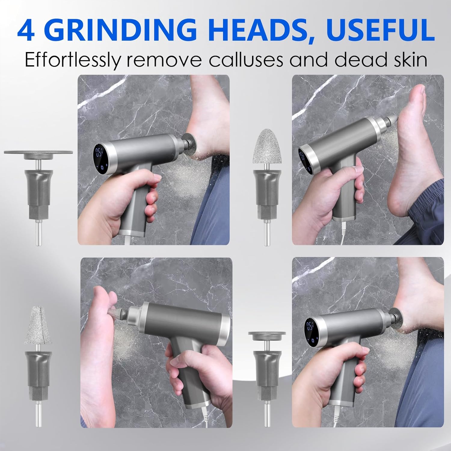 Upgraded Electric Callus Remover for Feet 4500rpm, Adjustable Speed Professional Electric Foot Sander Grinder Foot File for Calloused Feet Dead Hard Cracked Skin, with 4 Interchangeable Heads (Gray)