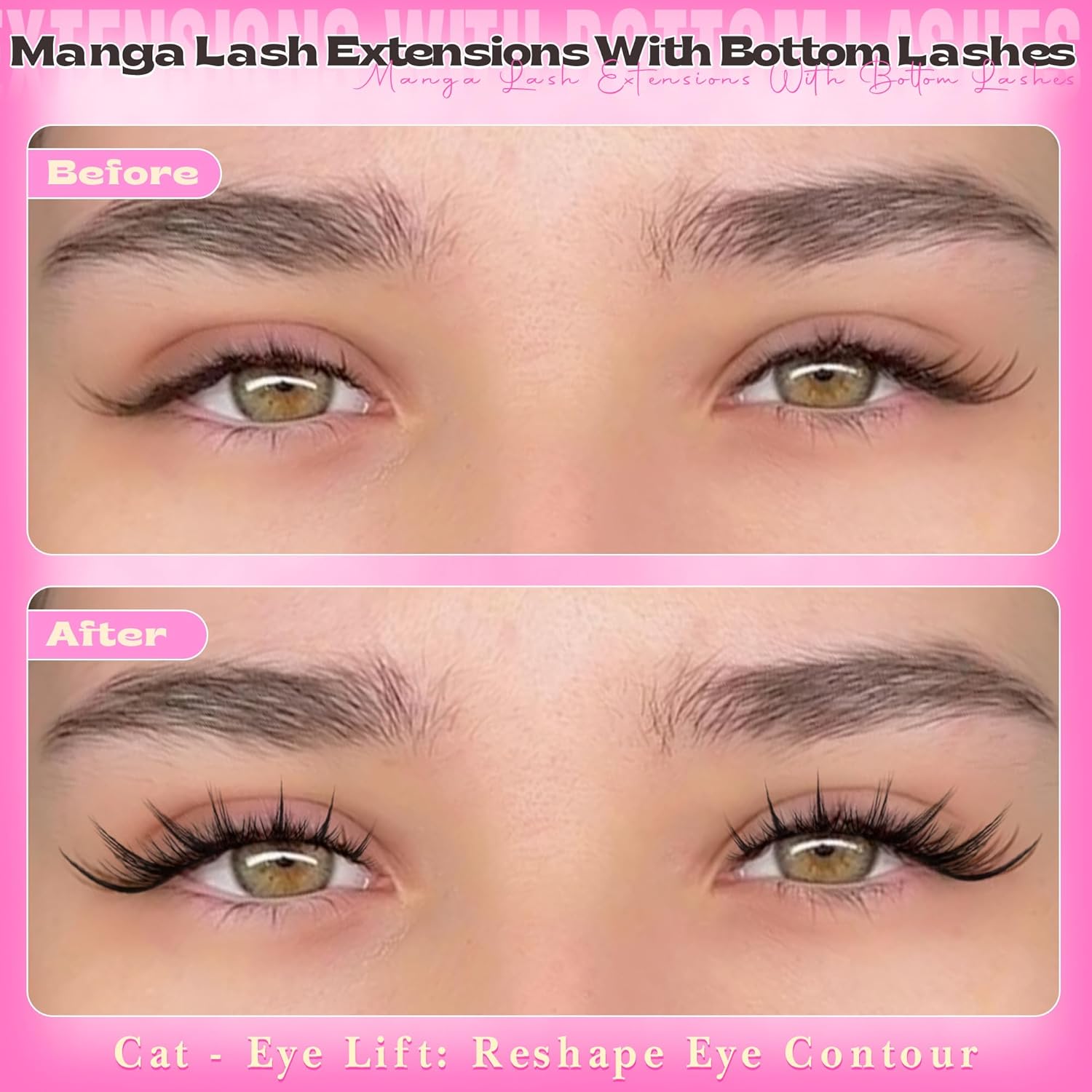 Fox Eye Lash Clusters Fairy Eyelash Clusters with Bottom Lashes Wispy Spiky Cluster Eyelash Extensions Natural C Curly Individual Lashes Manga Lash Extension Left+Right Cat Eye Lash Cluster by Pleell